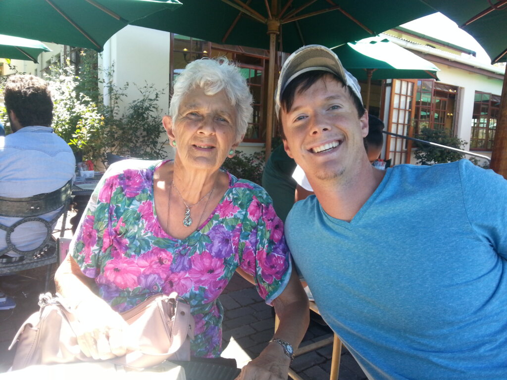 Having an awesome brekkie with Ouma overlooking the Franschoek Valley with Ouma.